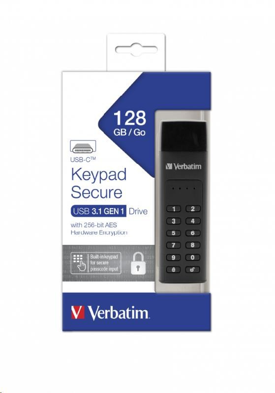 VERBATIM USB C 3.1 disk 128 GB - klávesnica Secure (R:160/W:150 MB/s) GDPR