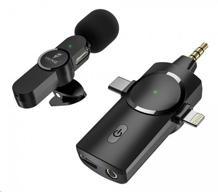Bezdrôtový mikrofón Viking s klipom M360, USB-C / Lightning / 3,5 mm jack