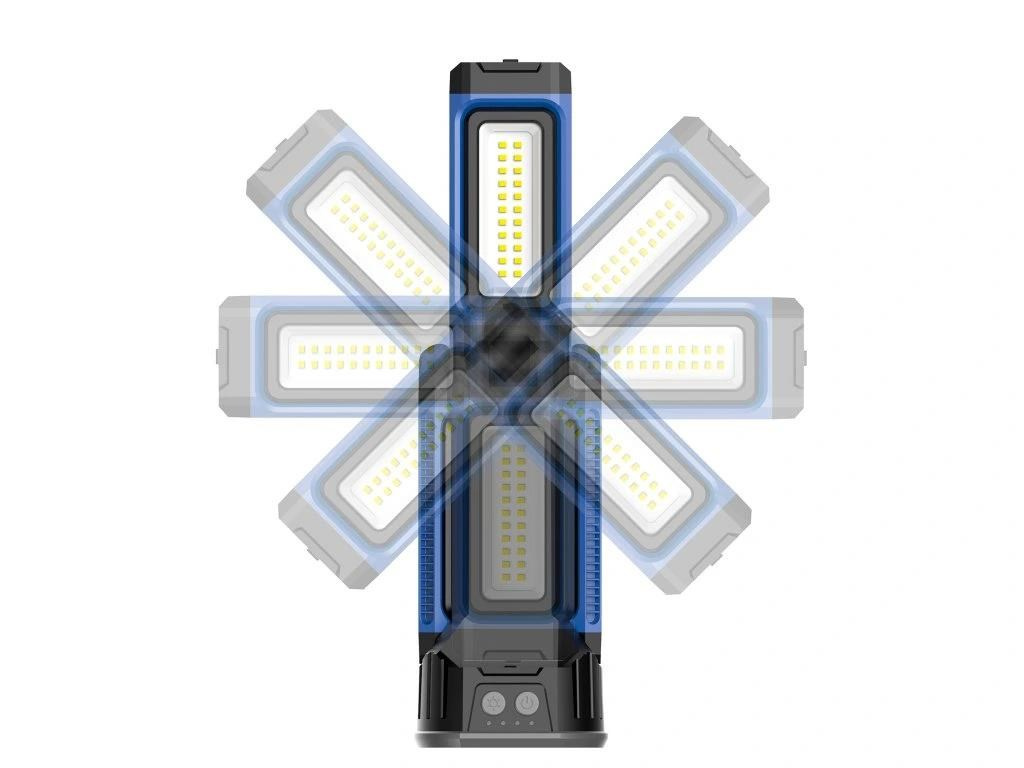 | Režim ovládania: | Rozložte pracovné svetlo a postavte ho. Stlačením vypínača ON/OFF aktivujete svetlo a následne jednotlivými stlačeniami prepínate medzi jednotlivými svetelnými režimami až do prípustného vypnutia. Stlačením vypínača ON/OFF (ikona slnka/ikona svetla) upravujete farbu svetla. Hlava svetla môže byť podľa potreby odmontovaná. |