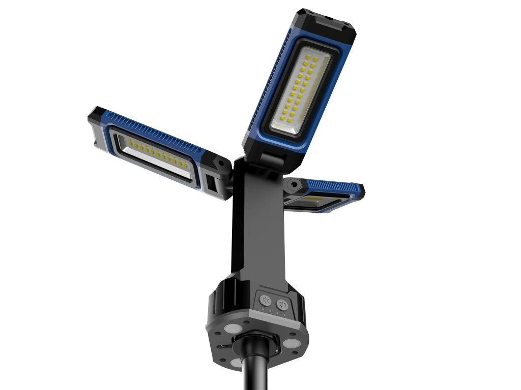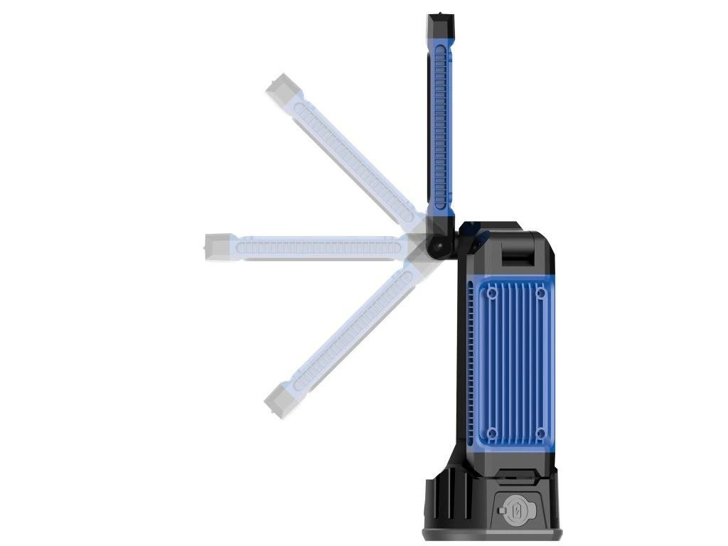 Viking B69573 je výkonné a univerzálne pracovné svetlo pre náročné podmienky. Vďaka inovatívnej konštrukcii so tremi rozkládacími krídlami poskytuje svetlo bez mŕtvych uhlov, takže rovnomerne osvetlí celý pracovný priestor.