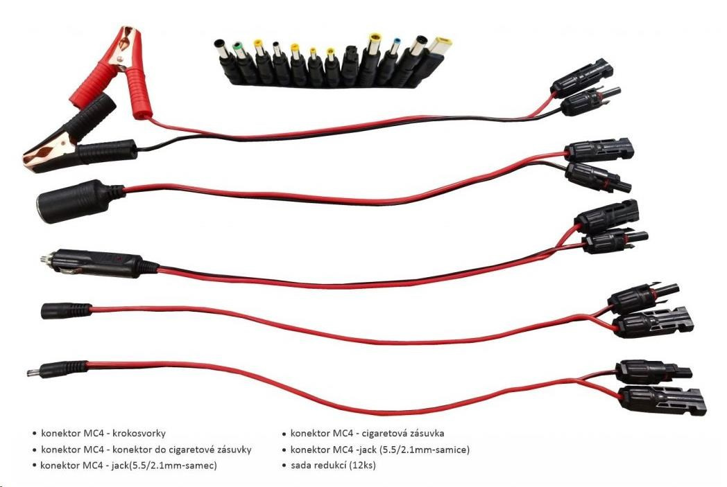 - Veľké množstvo redukcií a konektorov pre neobmedzené možnosti nabíjania