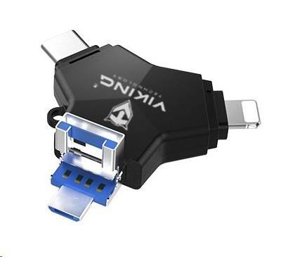 USB Flash disk Viking 3.0 4v1 s konektorom Lightning/Micro USB/USB/USB-C, 128 GB, čierna