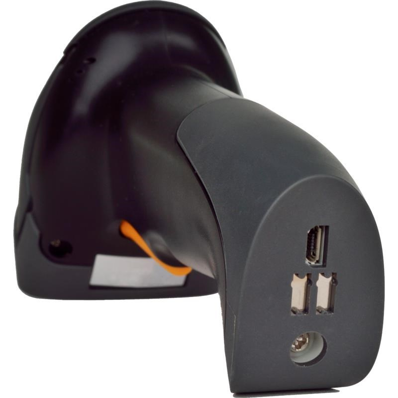 CCD Bezdrôtová ručná čítačka čiarových kódov v čiernej farbe s veľkým dosahom čítania až 0,6 m, dodávaná s pripojením a nabíjateľnou kolískou. Konštrukcia sa vyznačuje vysokou spoľahlivosťou a odolnosťou, skener je testovaný na pád z výšky až 1,5 m na zem. Nabíjateľná základňa - kolíska čítačky sa pripája cez port USB, čítačka môže emulovať klávesnicu aj sériový port.