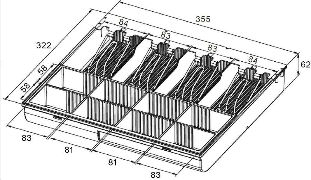 Náhradní plastový pořadač na peníze pro zásuvku S-410 - přihrádky 4 x bankovky, 8 x mince..
