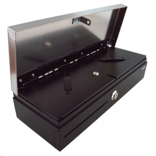 Pokladničná zásuvka Virtuos flip-top FT-460C2 - s káblom, s uzamykateľným krytom, veko NEREZ, čierna