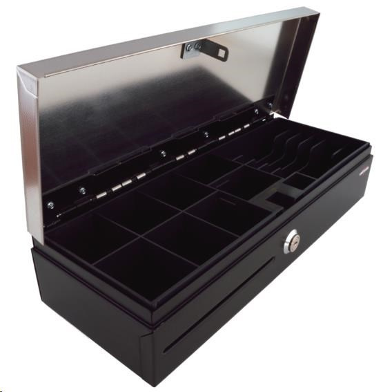 Pokladničná zásuvka Virtuos flip-top FT-460C2 - s káblom, s uzamykateľným krytom, veko NEREZ, čierna