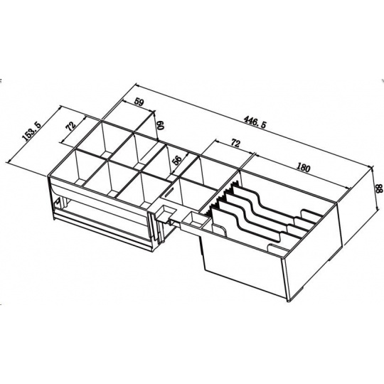 -Vyberateľný zásobník na bankovky (nastaviteľný) a mince