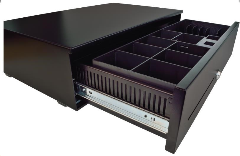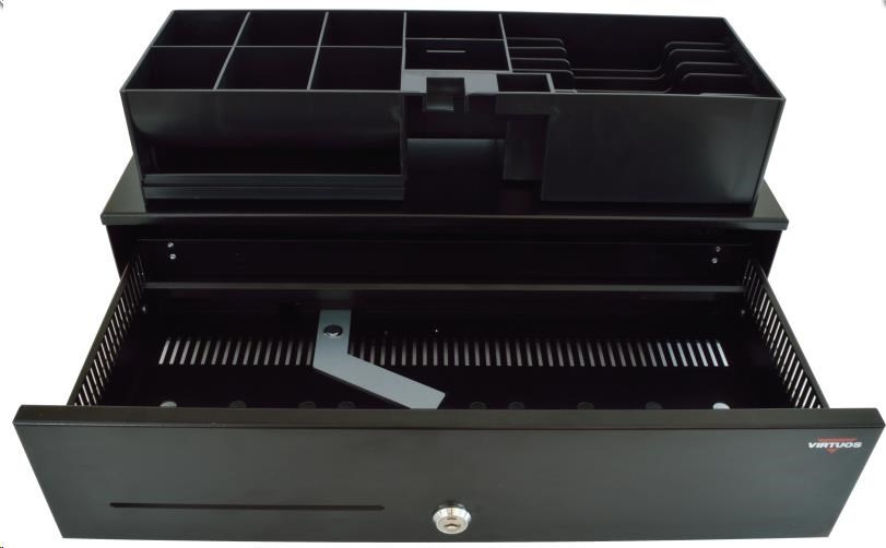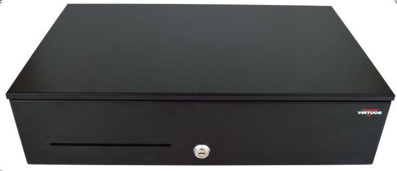 Pokladničná zásuvka Virtuos SK-500C, s káblom 24V, viazač 6/8, 9-24V, čierna