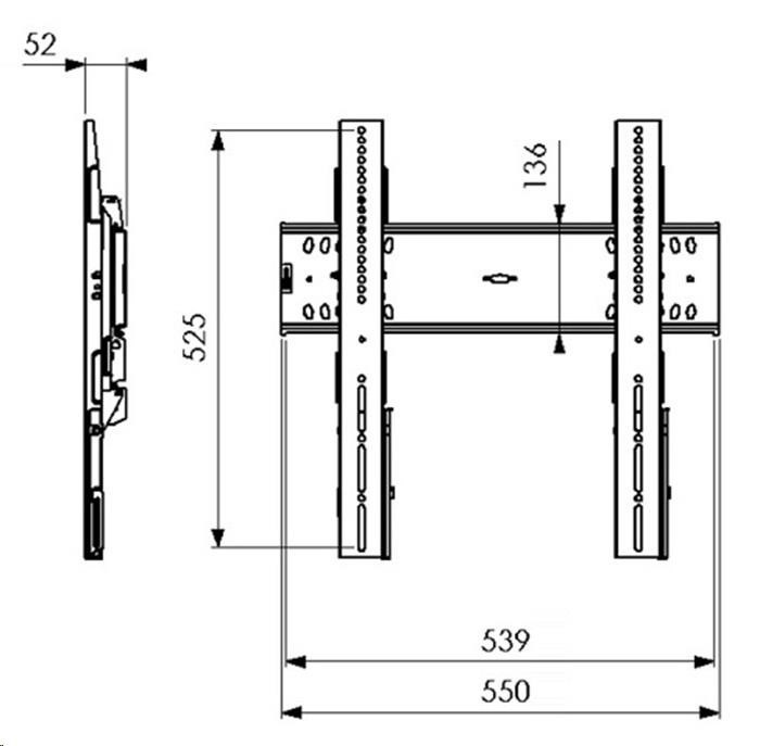 - Integrovaný zámok zabraňujúci neoprávnenej manipulácii, stačí ho zatlačiť a držiak sa uzamkne. Nie je potrebné spúšťať žiadne uzamykacie lišty za displejom