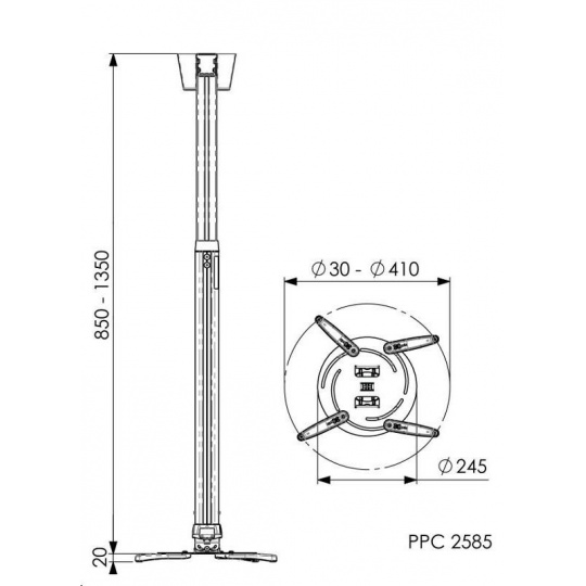 Teleskopický stropný držiak na projektor do 30 kg