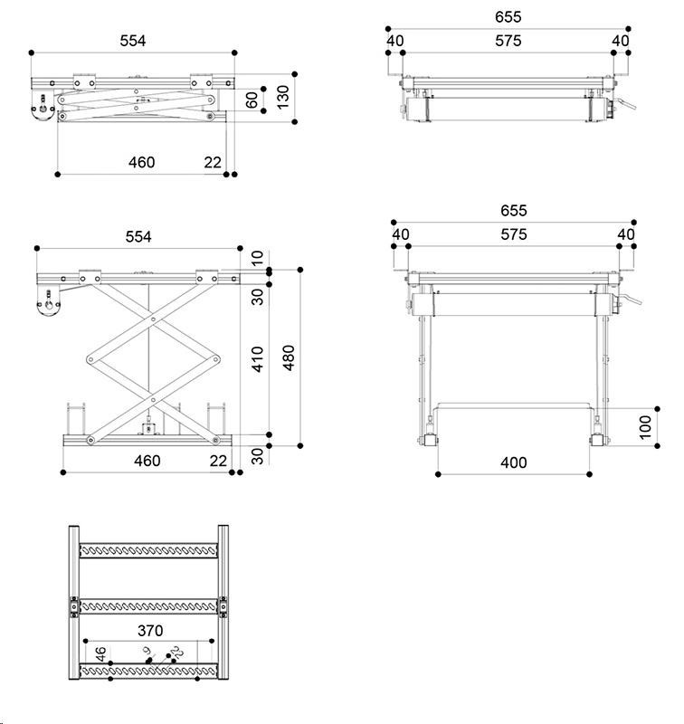 - Rozmery uzavretého výťahu 575 x 130 x 554 mm (Š x V x H)