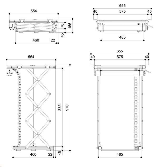 • Rozmery uzavretého výťahu 575 x 155 x 554 mm (Š x V x H)
