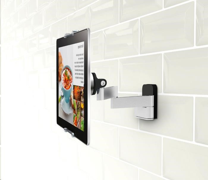 Tablet je veľmi užitočným nástrojom aj v kuchyni, a to nielen na vytváranie hudobných kulís, ale aj ako pomocník pri príprave kulinárskych výtvorov. Spoločnosť Vogel navrhla pohyblivú konzolu, ktorá poskytuje spoľahlivé a flexibilné upevnenie na stenu, aby sa maximalizovalo jej využitie. Nezaberá miesto na pracovnej ploche a udržuje tablet v bezpečnej vzdialenosti od striekajúcej vody.