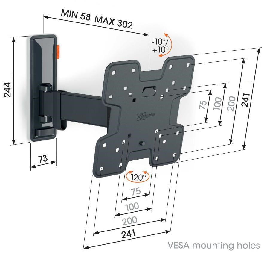 Bezpečnosť, dizajn a pohodlie pri sledovaní TV idú ruka v ruke s držiakom TVM 3223. Držiak je špeciálne navrhnutý pre intenzívne používanie. Je veľmi robustný a zaručuje optimálny zážitok zo sledovania TV. Môžete ho otáčať až o 120° (záleží na šírke TV) a nakláňať o 20° (10° hore a dole). TVM 3223 je vhodný pre televízory s uhlopriečkou od 19 do 43 palcov a hmotnosťou do 15 kg.