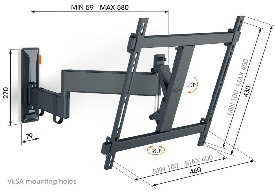 - Otočte televízor až o 180° vďaka 58 cm dlhým ramenám