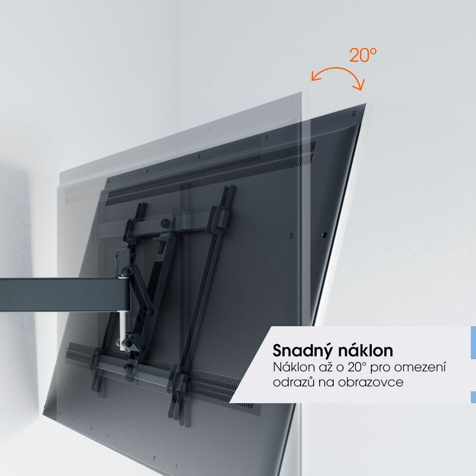 - Jednoduché naklápanie - vyhnite sa odrazom a skloňte TV až do uhla 20°, zabezpečenie a uvoľnenie pomocou TiltAnchor™