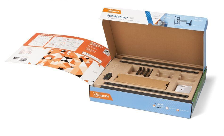 Spoločnosť Vogel's vám maximálne uľahčí inštaláciu držiaka. Balenie obsahuje vrtaciu šablónu, skrutky, hmoždinky Fischer® DuoPower, stahovacie pásky na káble a vodováhu. Pomocou našej bezplatnej aplikácie DrillRight™ AR App si ľahko označíte prvý vrtací otvor a pokyny k inštalácii nájdete v stručnom sprievodcovi inštaláciou. Alebo si pozrite podrobný návod či špeciálne inštalačné video online.