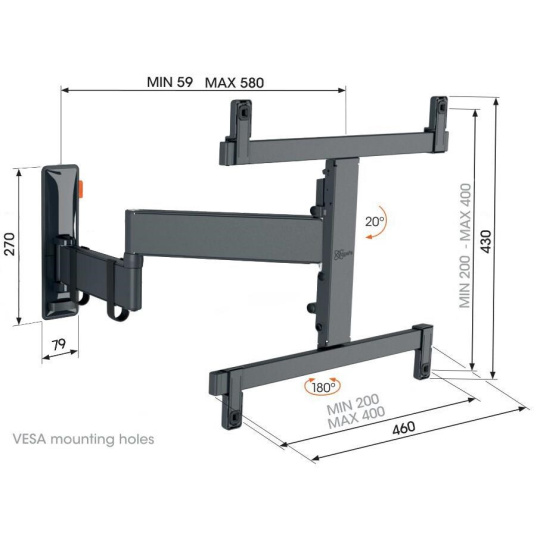 - Otočte televízor až o 180° vďaka 58 cm dlhým ramenám