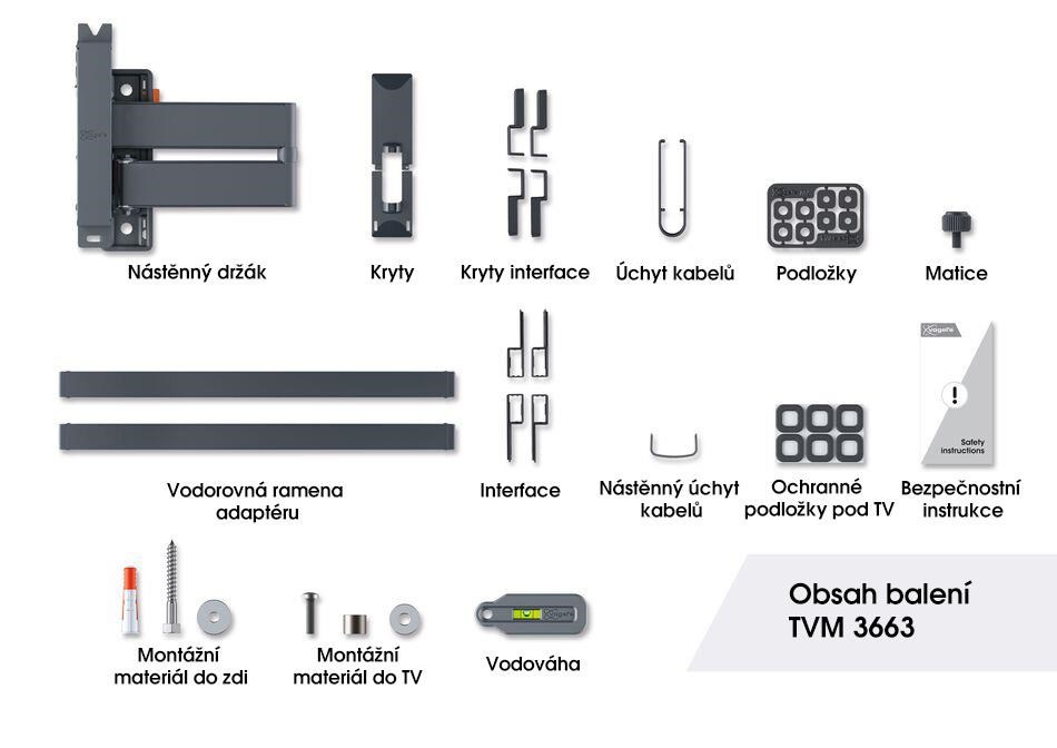 Nástenné držiaky série COMFORT Full-Motion+ sa ľahko inštalujú. Vrtná šablóna, skrutky, hmoždinky Fischer® DuoPower, lepiace pásky na káble a vodováha sú už súčasťou balenia. V aplikácii DrillRight™ AR App si môžete vďaka rozšírenej realite ľahko prezrieť, ako bude vyzerať váš televízor v konkrétnom interiéri a vyznačiť na stene presnú polohu pre prvý vrtací otvor. Potom priložíte vrtnú šablónu a označíte si zvyšné otvory na montáž držiaka. Je váš televízor namontovaný trochu nakrivo? Po montáži na stenu ho môžete dodatočne vyrovnať. S TVM 3663 je zaistená bezpečná montáž vašej OLED TV. Držiak na stenu je certifikovaný TÜV a testovaný na trojnásobok svojej maximálnej nosnosti.