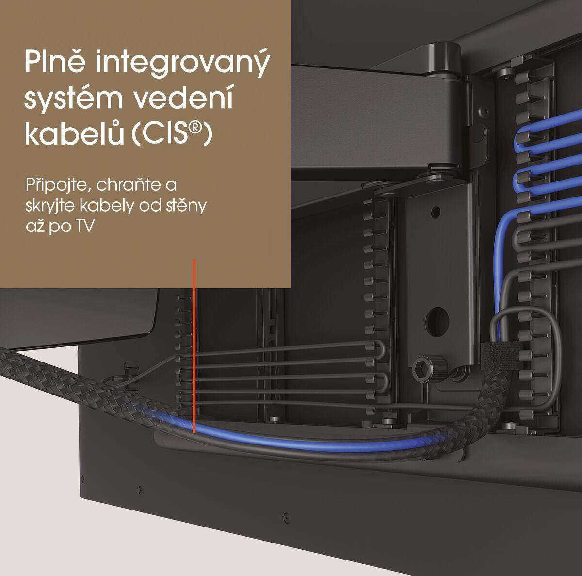 - Plne integrovaný systém vedenia káblov (CIS®) - Pripojte, chráňte a skryte káble od steny až po televízor