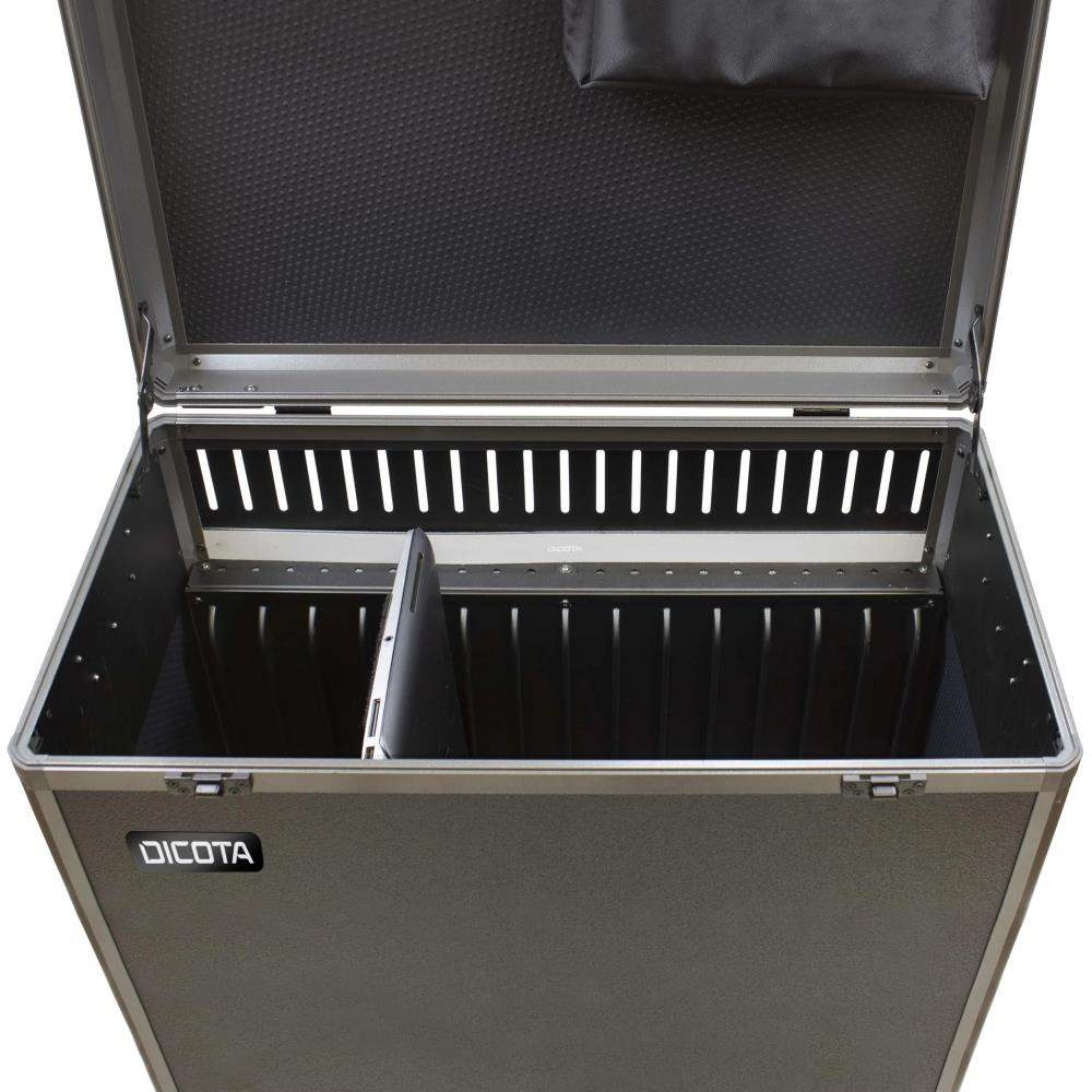 Data Box XL Trolley je robustný kufor s odnímateľným systémom vozíkov pre notebooky do 15.6". Praktické a mimoriadne robustné hliníkové puzdro s výklopným vreckom na tlačiareň umožňuje používateľovi profesionálnu prácu na cestách a zaručuje bezpečnú prepravu notebooku a tlačiarne! Nový výsuvný jazyk na papier zachytí vytlačené dokumenty až do veľkosti DIN A4. Špeciálny princíp "Floor-to-desk", ktorý vyvinula spoločnosť DICOTA, znamená, že tlačiareň a sieťový adaptér zostávajú počas používania kompletne zapojené v puzdre. Notebook sa dá voľne používať na stole. Vozík Data Box XL je tiež uzamykateľný; dodávajú sa dva kľúče. Údaje sa bežne prenášajú pomocou káblov tlačiarne alebo cez Bluetooth. Tlačiareň sa ovláda a batéria sa nabíja prostredníctvom konektora 220/230 V pre nízkoenergetické zariadenie na vonkajšom plášti skrine. Konektor zariadenia s nízkou teplotou môže byť pri preprave zakrytý gumovou krytkou. Odnímateľný systém vozíkov zabezpečuje mimoriadne pohodlnú prepravu vašej mobilnej kancelárie. Ak by ste v určitom okamihu funkciu vozíka nepotrebovali, systém vozíka sa dá veľmi jednoducho odstrániť rýchlym pohybom. Vozík Data Box XL je vhodný pre všetky obľúbené notebooky do 15.6" a pre mobilnú tlačiareň HP OJ 250 - s podporou alebo bez podpory prenosnej súpravy Canon. Ďalšie tlačiarne sú k dispozícii na požiadanie. Upevnenie tlačiarne pre mobilnú tlačiareň HP OJ 250 integrované v skrinke kufra, v závislosti od modelu. Pri výmene tlačiarne možno tento držiak tlačiarne vymeniť za iný model (k dispozícii ako voliteľné príslušenstvo) jednoduchým uvoľnením štyroch imbusových skrutiek Polstrované vrecko na notebook Obzvlášť robustné puzdro Princíp "od podlahy k stolu" Vnútorná kabeláž Uzamykateľná schránka, dva kľúče v balení Konektor pre nízkoenergetické zariadenie 220 V na vonkajšom plášti puzdra Prenos dát bežnými prostriedkami alebo prostredníctvom Bluetooth Odnímateľný systém vozíka Presné prispôsobenie pre HP OJ 250 Viac informácií Viac informácií Číslo položky D31846 Farba čierna Objem v litroch 0 Materiál Hliník / Con-Pearl® Záruka 24 mesiacov EAN 7640186419796 Max. Rozmery zariadenia (mm) 410 x 310 x 60 mm 16.14 x 12.2 x 2.36 palcov Rozmery výrobku (mm) 455 x 445 x 280 mm 17.91 x 17.52 x 11.02 palcov Hmotnosť 7.4 kg / 16.28 libier..