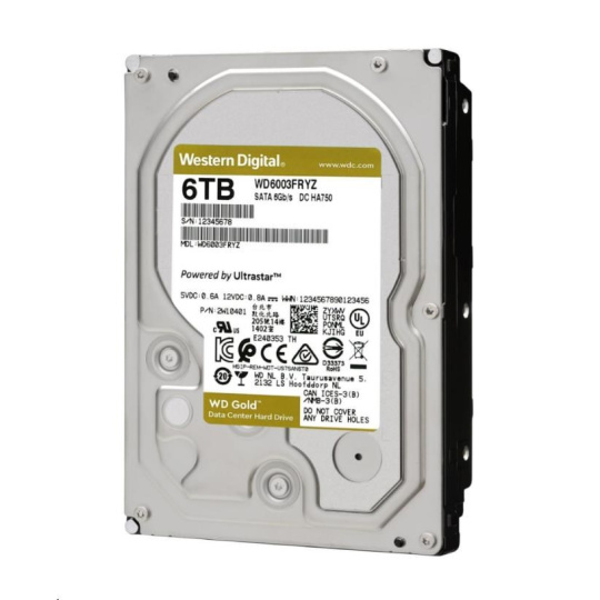WD GOLD WD6003FRYZ 6TB SATA/ 6Gb/s 256MB cache 7200 otáčok za minútu, CMR, Enterprise