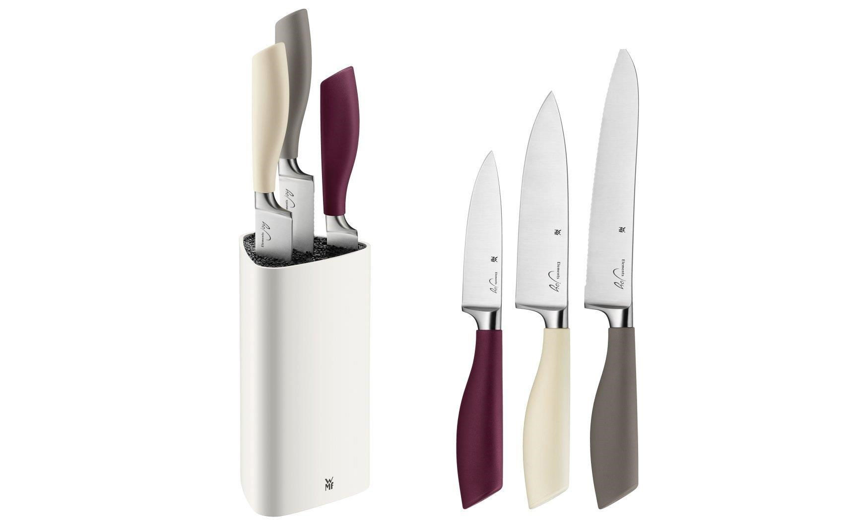 WMF Elements blok s noži, nůž šéfkuchaře 13 cm, nůž na přípravu 15 cm, víceúčelový nůž, speciální nerezová ocel