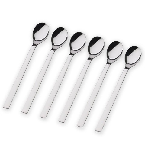 Elegantné riešenie pre vysoké poháre. Lyžičky na latte macchiato z kolekcie Nuova sú navrhnuté s extra dlhou rukoväťou, ktorá hravo dosiahne na dno vysokých pohárov. Sú ideálnym spoločníkom nielen pre milovníkov vrstvených kávových špecialít, ale aj pre zmrzlinové poháre alebo koktaily.