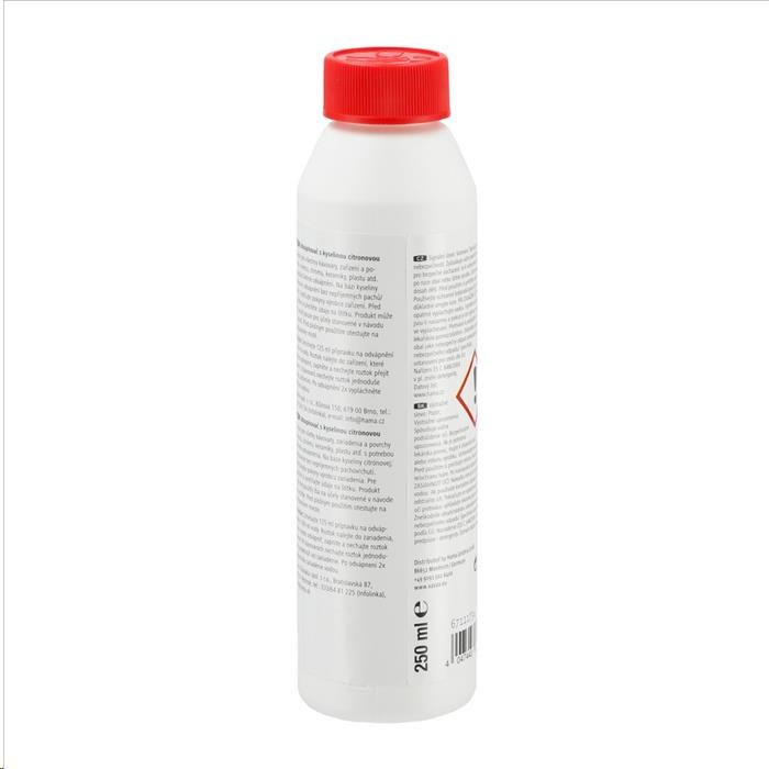 - prípravok na rýchle odvápnenie - vhodný pre všetky zariadenia na prípravu čaju, kávy, pressa, kapslové kávovary, aj plne automatické kávovary, varné kanvice, rýchlovarné konvice, ponorné variče, hrnce, nerezové hrnce a panvice, drezy, povrchy z nerezovej ocele, chrómu, keramiky a plastu atď., ktoré vyžadujú šetrné odvápnenie - na báze kyseliny citrónovej: odvápnenie bez nepríjemných pachov/chutí - bezpečnostný uzáver proti náhodnému otvoreniu deťmi - objem: 250 ml - vyrobené v Nemecku Upozornenie: Dodržiavajte pokyny výrobcu zariadenia. Pred použitím si prečítajte údaje na štítku. Pred plošným použitím otestujte na nenápadnom mieste. Použitie: Zmiešajte 125 ml prípravku na odvápnenie s 500 ml vody. Roztok nalejte do zariadenia, ktoré chcete odvápniť, zapnite a nechajte roztok prejsť varením. Pri kávovaroch nechajte roztok jednoducho pretiecť zariadením. Po odvápnení 2x vypláchnite zariadenie vodou.