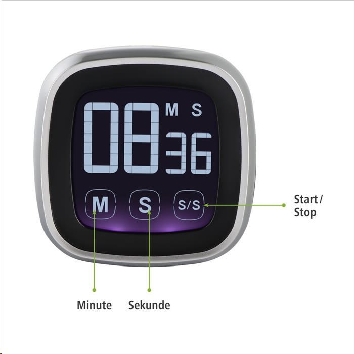 - digitálna minútka so štýlovým dizajnom - nastavovanie času pomocou 3 dotykových tlačidiel (až do 99 minút a 59 sekúnd) - funkcia stôpiek a odpočítavania - tlačidlo Start / Stop - hlasitý zvukový signál - veľký 4-číslicový displej (XX:XX) - podsvietenie - možnosť postaviť na vodorovnú plochu pomocou stojánka alebo pripevniť na kovové magnetické povrchy pomocou magnetu - rozmery (V x D x Š): 7,2 x 7,2 x 2,4 cm - napájanie: 2x Micro AAA (súčasť balenia) - farba: čierna / strieborná