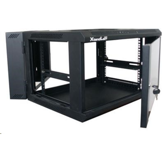 XtendLan 19" dvoudílný nástěnný rozvaděč 22U 600x550, nosnost 60 kg, skleněné dveře, svařovaný,černý