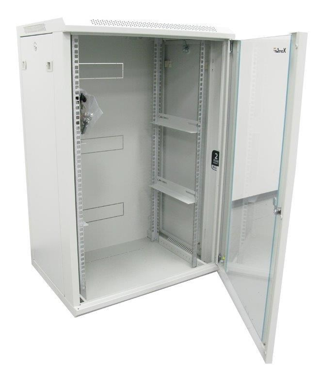 XtendLan 19" nástěnný rozvaděč 15U 600x450, nosnost 60 kg, skleněné dveře, svařovaný, šedý