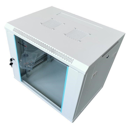 XtendLan 19" nástěnný rozvaděč 6U 600x450, nosnost 60 kg, skleněné dveře, svařovaný, šedý