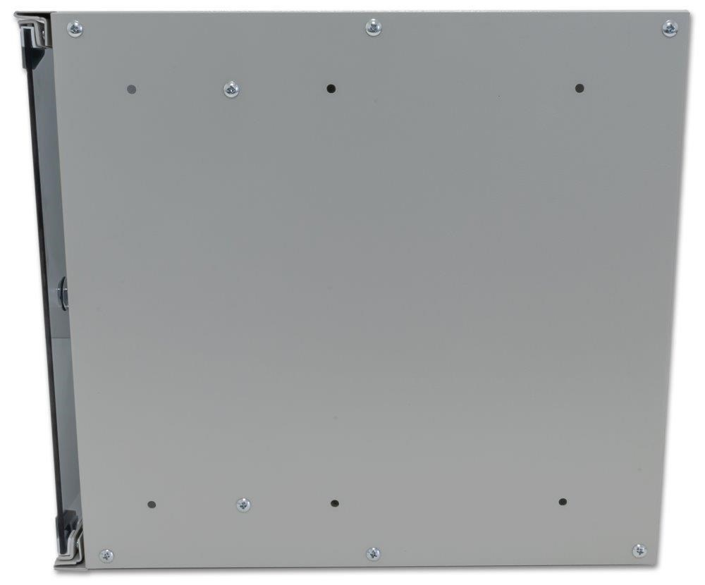- V hornej a dolnej časti skrinky sú otvory pre kabeláž a sú zakryté zaslepovacími zátkami