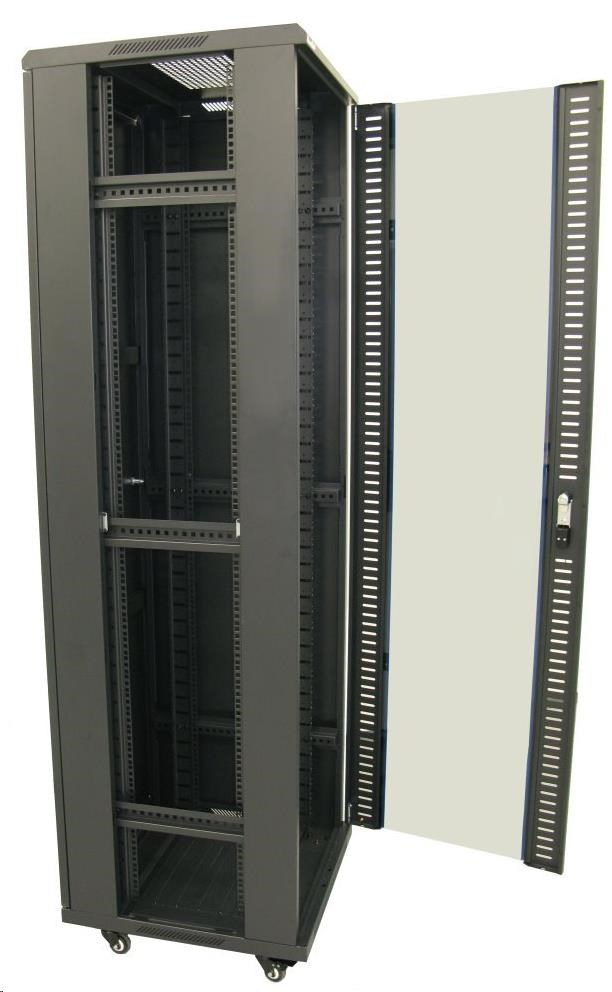 XtendLan 19" stojanový rozvaděč 42U 600x600, nosnost 800kg, skleněné dveře, plná záda, kolečka,černý