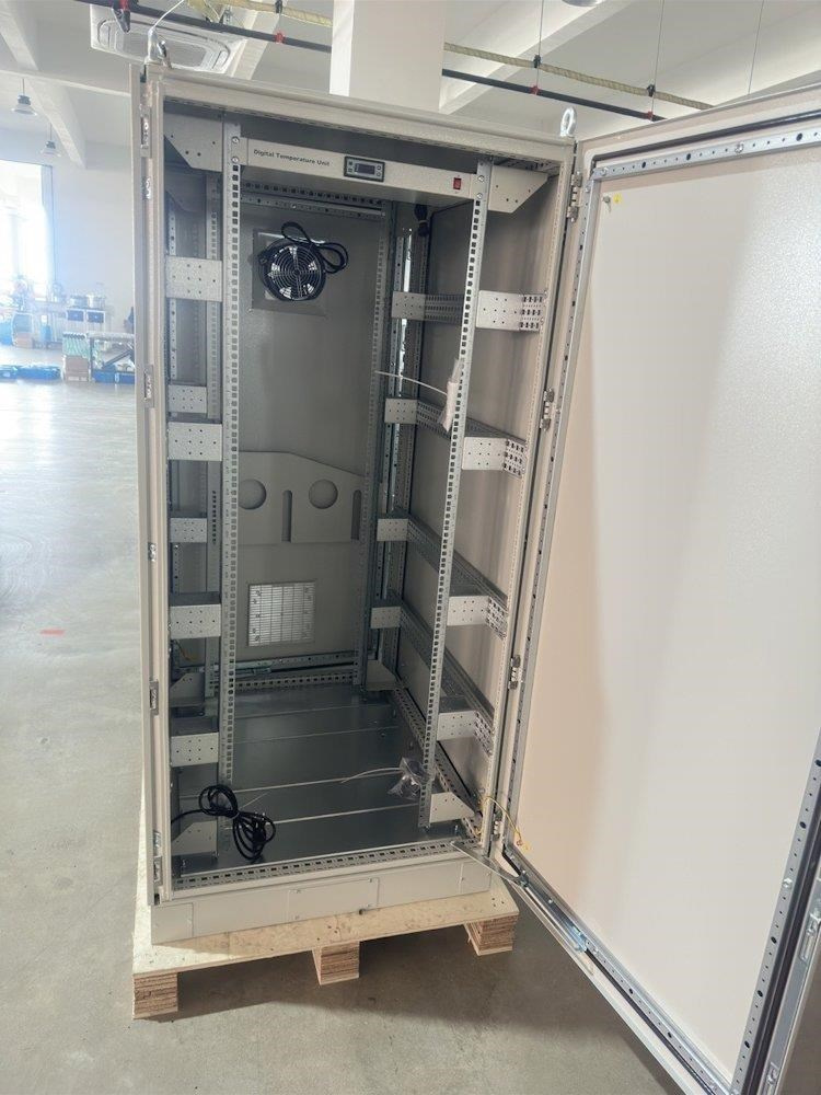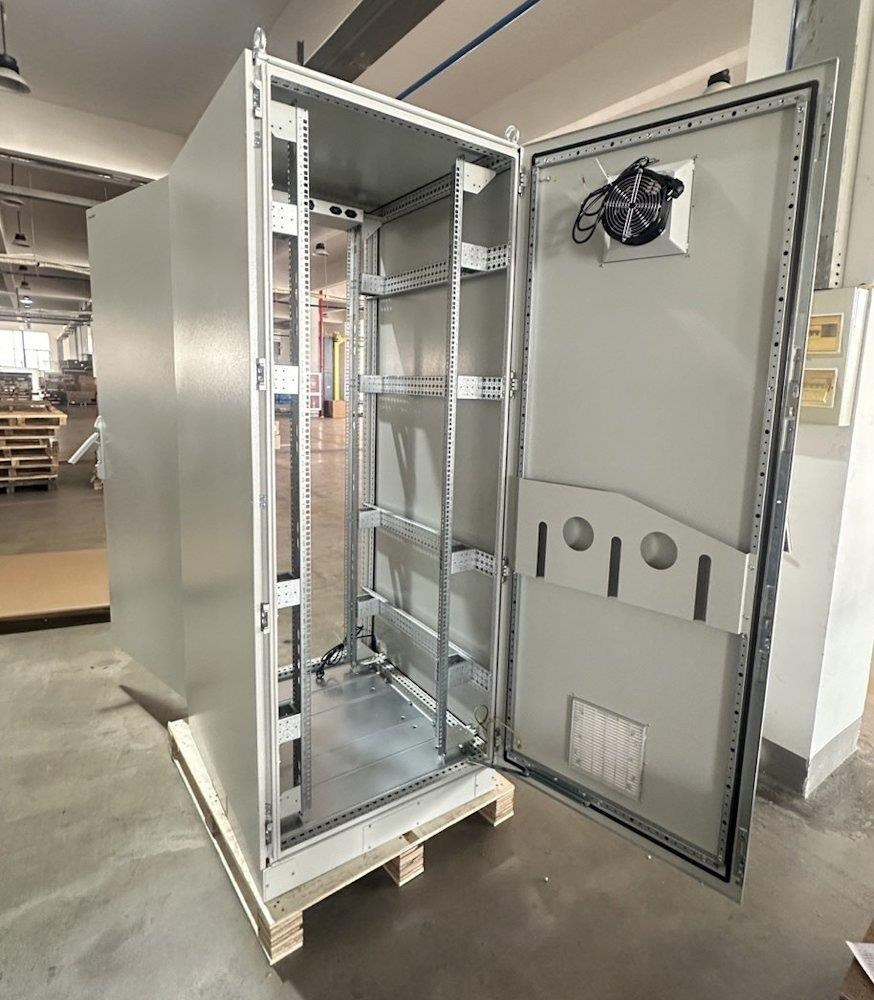 Rozvádzač na inštaláciu dátových a telekomunikačných zariadení, ventilácia s termostatom, podstavec, šedý.