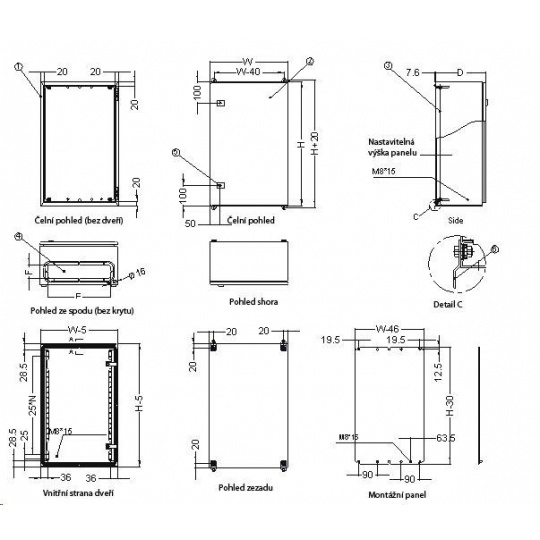 - hrúbka montážneho panelu 2,5mm, valcovaná oceľ