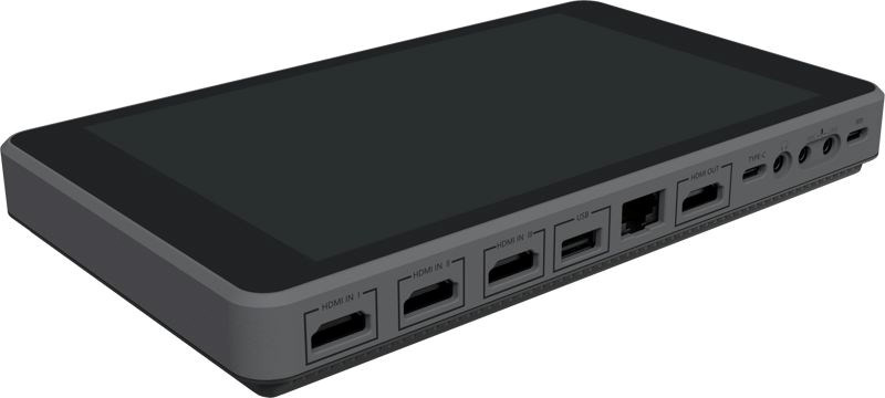 - Zariadenie funguje ako prepínač s radom šablón obrazu v obraze a grafických vrstiev. Obsahuje zabudovaný kodér, ktorý umožňuje živé streamovanie a môže nahrávať na voliteľné SD karty.