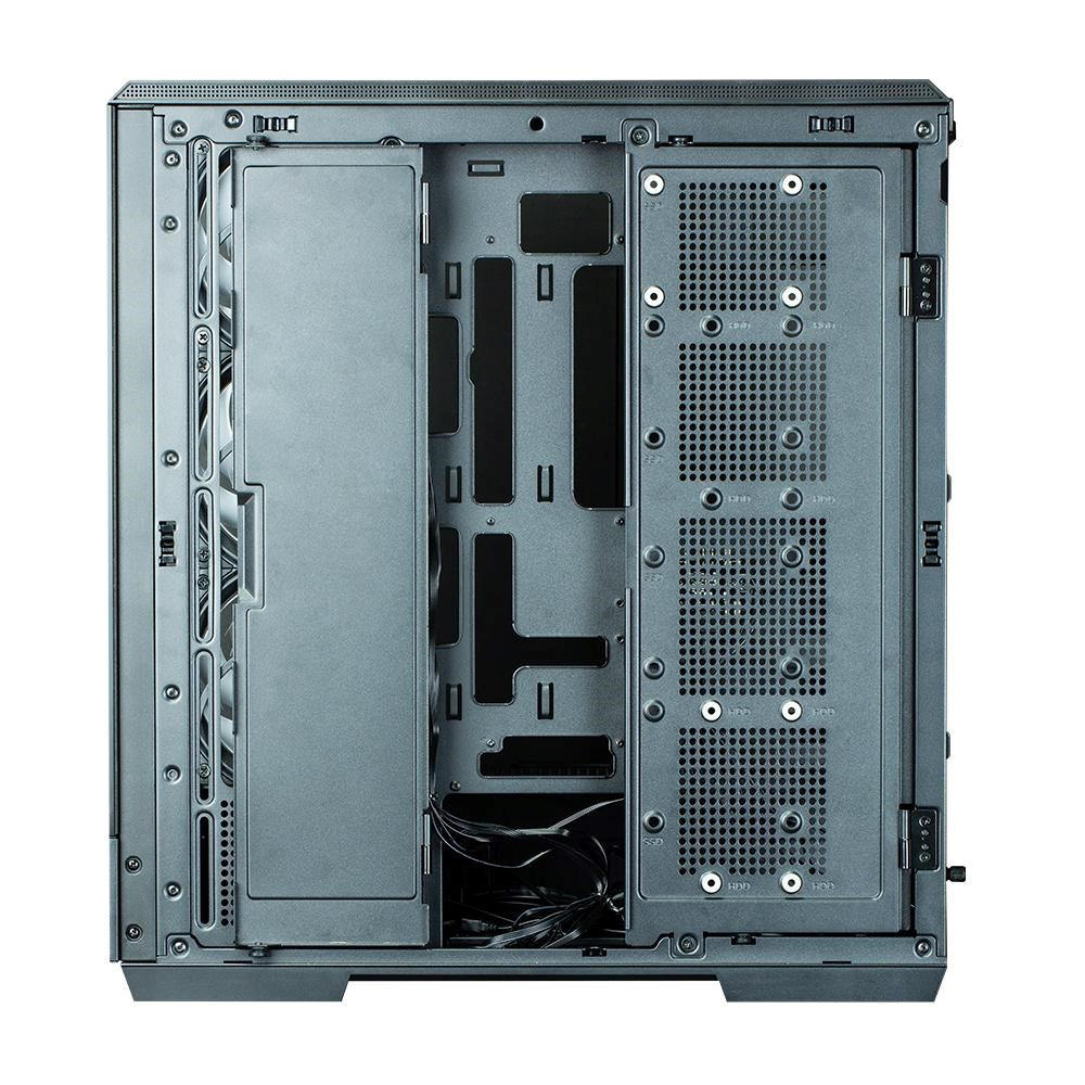 Dva bezrámové predné a bočné tvrdené sklá zobrazujúce jedinečnú zostavu počítača. Vestavená obrazovka zobrazuje teplotu CPU, teplotu GPU a reálny čas.