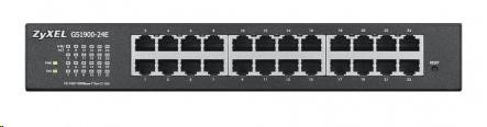 Zyxel GS1900-24E 24-portový stolový gigabitový webový inteligentný prepínač: 24x gigabitový metal, IPv6, 802.3az (zelená), bez ventilátora, racková súprava