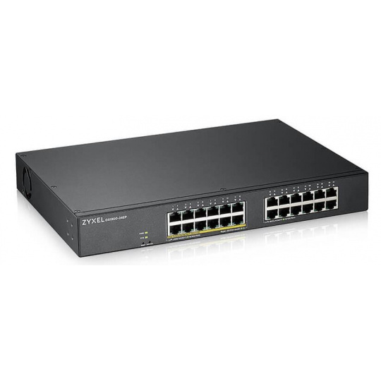 Zyxel GS1900-24EP 24-portový gigabitový inteligentný riadený PoE prepínač, 24x gigabitový RJ45 (12x PoE), rozpočet PoE 130W