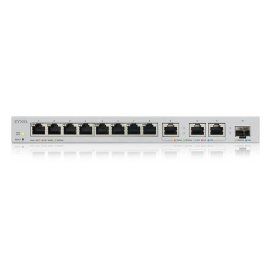 Zyxel XGS1250-12 12-portový gigabitový webový manažovateľný prepínač, 8x Gigabit RJ45, 3x MultiGig 1/2.5/5/10G, 1x SFP+